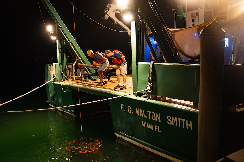 En septiembre, el barco de investigación FG Walton Smith partió de Miami en una misión de 36 horas, con seis investigadores y siete tripulantes a bordo. El objetivo: determinar cuánta agua fluye por segundo hacia el norte a través de la Corriente de Florida y recopilar datos de temperatura, salinidad, densidad y velocidad. A lo largo de nueve puntos de muestreo y dos inmersiones de buzos, el equipo enfrentó desafíos como la rotura de cables, sensores que dejaron de transmitir información y condiciones de visibilidad nula bajo el agua.