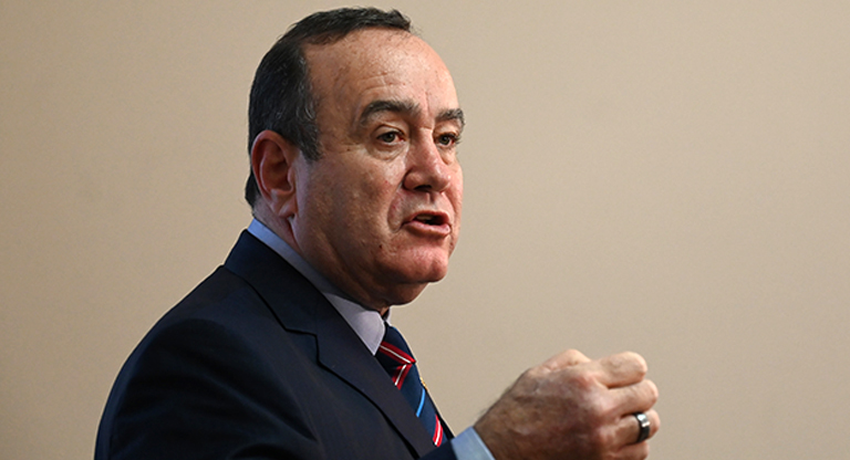 Giammattei, afectado por una esclerosis múltiple que lo obliga a andar en muletas, es defensor de la mano dura contra la delincuencia y es partidario de reinstaurar la pena de muerte.