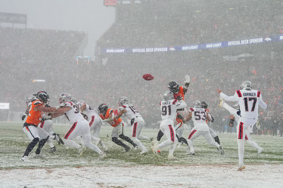 La caída del mariscal de campo rival, Bo Nix, marcó un punto de inflexión que permitió a los Patriots igualar el tanteador antes del descanso, aunque la nieve complicó los intentos de anotación en la segunda mitad. Tanto Will Lutz para los locales como Andy Borregales para New England fallaron intentos de gol de campo, una muestra de cómo el clima afectó el desempeño de los equipos.