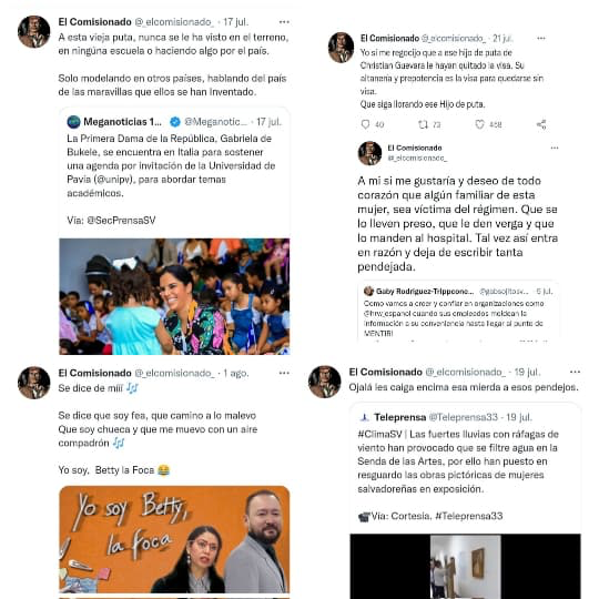 Adeptos al gobierno de Bukele afirman que se escondía en cuentas anónimas para hacer amenazas y difamaciones. Aseguran que el «sujeto emitía comentarios misoginos denigrando a cuanta persona no estuviera deacuerdo con su postura», aunque no entiendan que eso, precisamente, es el buen uso de la libertad de expresión.