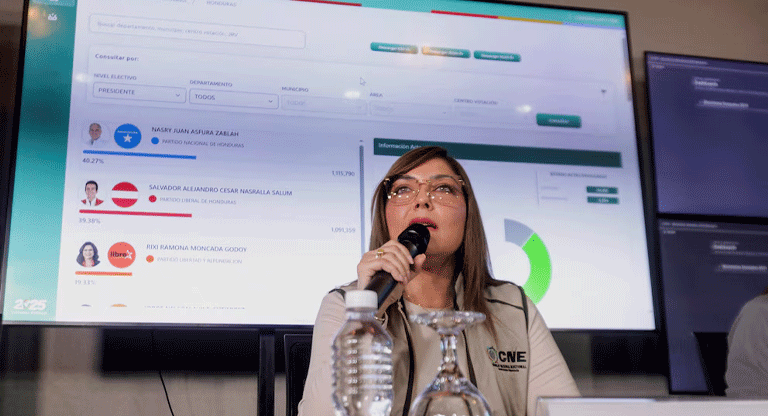 Antes de la detención del sistema, el último corte de resultados posicionaba al candidato Nasry Asfura, del Partido Nacional, en primer lugar con 40,19% de los votos. En segundo lugar aparecía Salvador Nasralla, del Partido Liberal, con 39,49%, con un total de 88,02% de actas procesadas. La candidata de Libre se ubicaba tercera con 19,30%.