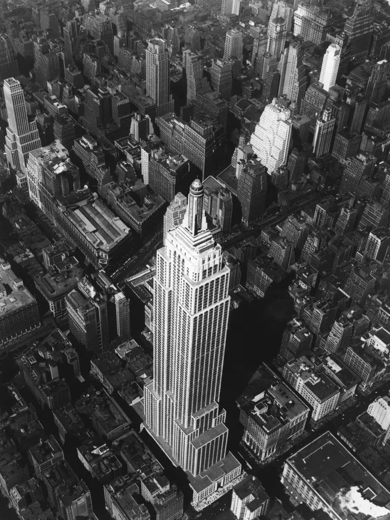 Emplazado en la intersección de la Quinta Avenida y West 34th Street, de Nueva York, desde su inauguración en 1931 hasta que se terminó de edificar la Torre Norte de The World Trade Center, el Empire State fue el edificio más alto de la ciudad, con una altura de 380 metros que se alarga a los 443 si se miden también la aguja y la antena que lo coronan.