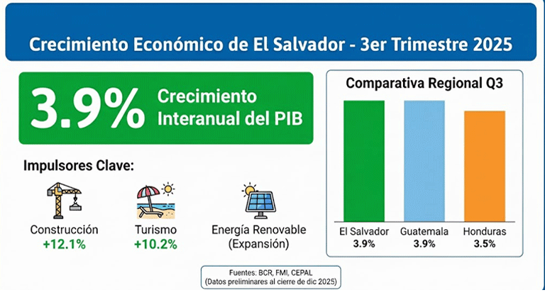 | El Salvador | 3.9% | Expansión impulsada por Turismo y Construcción. |