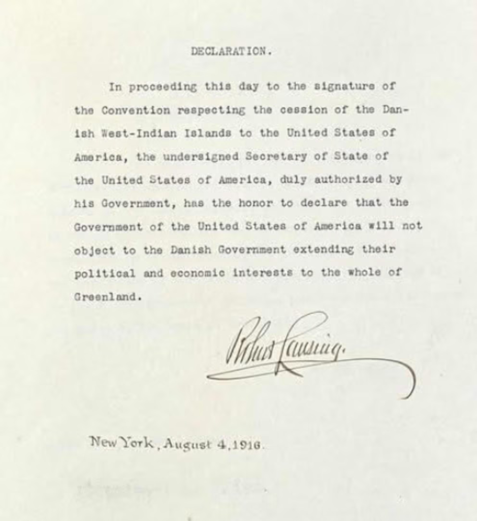 Décadas después, durante la Segunda Guerra Mundial y la Guerra Fría, Estados Unidos establecería bases militares en Groenlandia, como la de Thule, siempre bajo el principio reconocido desde 1917: el territorio pertenecía a Dinamarca.