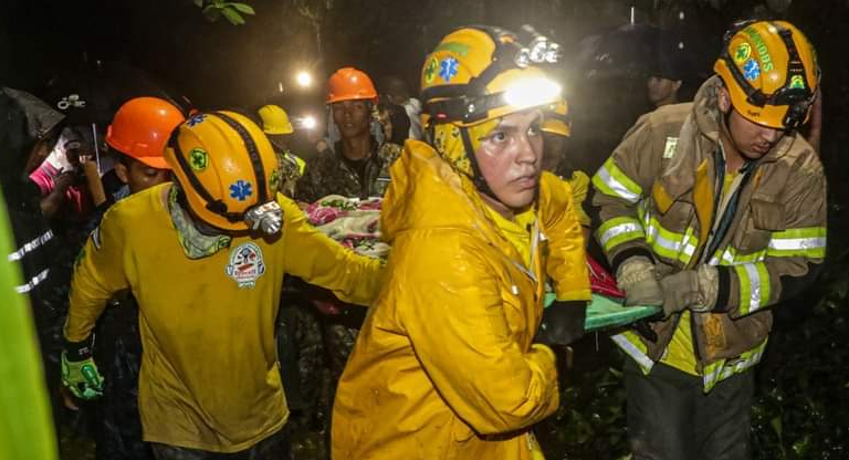 Protección Civil también informó que dos personas adultas mayores quedaron soterradas “debido al colapso de un muro sobre su vivienda tras las intensas lluvias”, en una zona rural del distrito de Panchimalco, al sur de San Salvador.