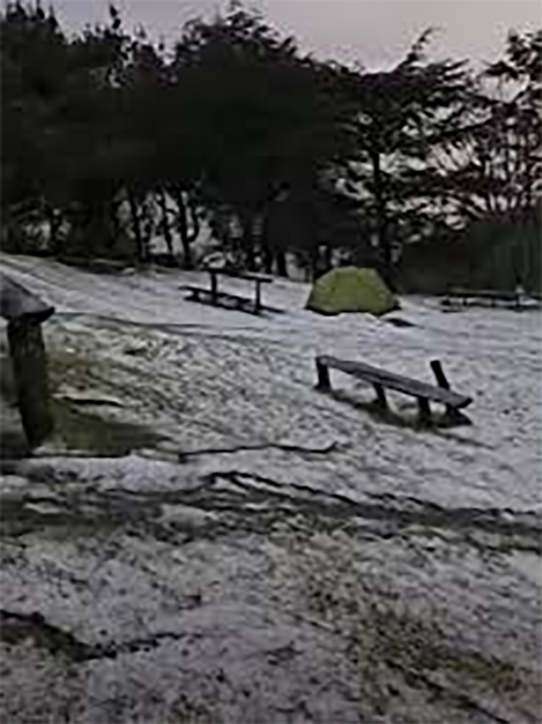Aunque de corta duración, el fenómeno dejó una postal inusual: uno de los paisajes más altos del país cubierto de blanco.
