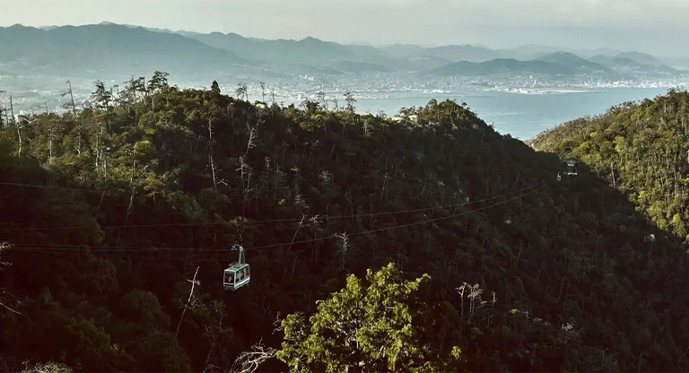 Templo rojo en el sendero del Monte Misen, donde turistas confiados en la IA quedaron atrapados al recibir horarios incorrectos del teleférico