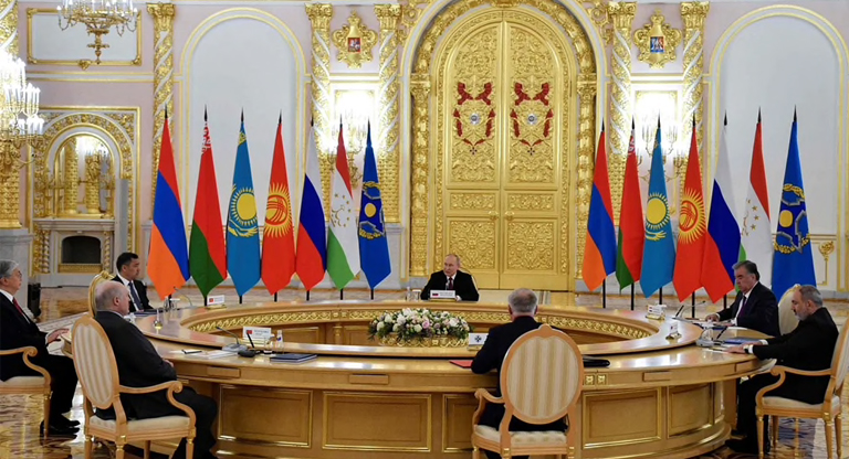 La declaración emitida tras la reunión de los seis miembros de la Organización del Tratado de Seguridad Colectiva (OTSC) no mencionó a Ucrania ni lo que Rusia llama su “operación especial”. El grupo, que tiene a Moscú como centro de gravedad geopolítico, es la respuesta del mundo postsoviético a la OTAN y fue recibido por el líder ruso en Moscú, para conmemorar el 30º aniversario de su fundación. Pero sólo Putin, y su homólogo bielorruso, Alexander Lukashenko, hablaron de la guerra en Ucrania. El resto calló.