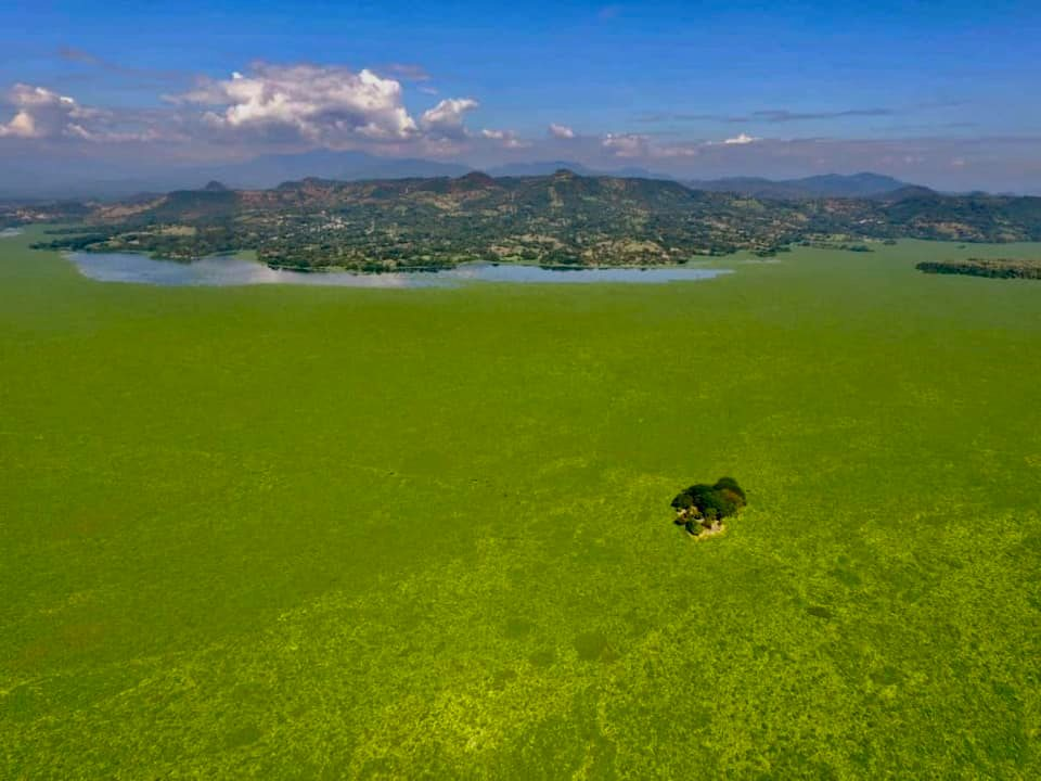 El Lago Suchitlán, ubicado entre Chalatenango, Cuscatlán y Cabañas, atraviesa una de las peores crisis ecológicas de su historia. Desde agosto, una invasión masiva de lechuga de agua (Pistia stratiotes) ha cubierto extensas áreas del lago, bloqueando la pesca artesanal, ahuyentando al turismo y alterando el equilibrio del ecosistema.