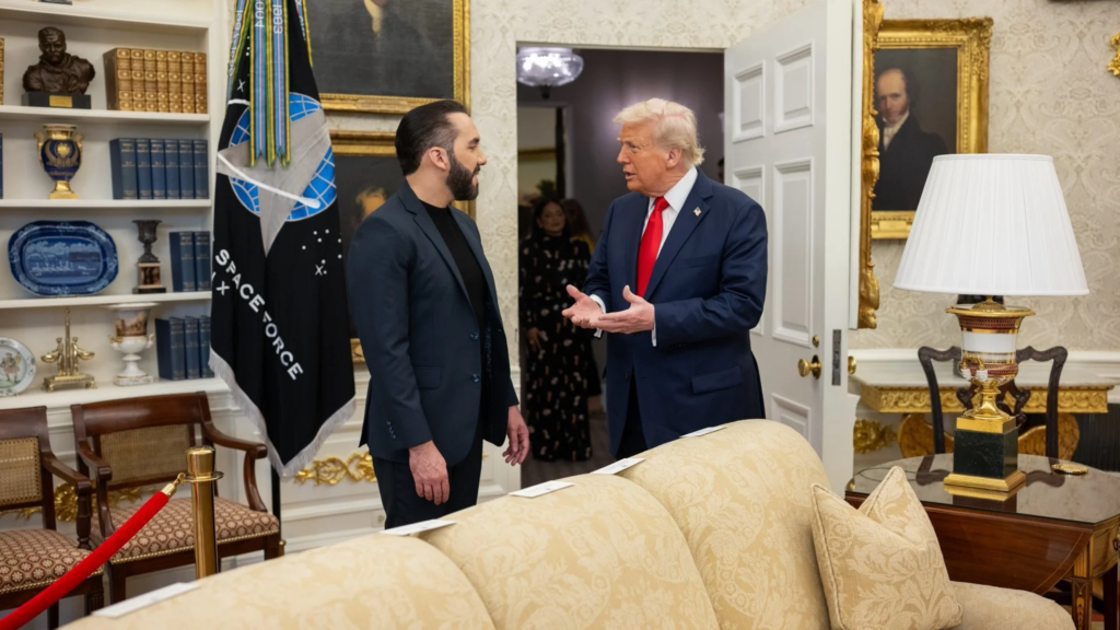 • Trump agradeció públicamente a Bukele por aceptar la expulsión de inmigrantes acusados de delitos graves y por trabajar “estrechamente” en objetivos comunes de seguridad y prosperidad.