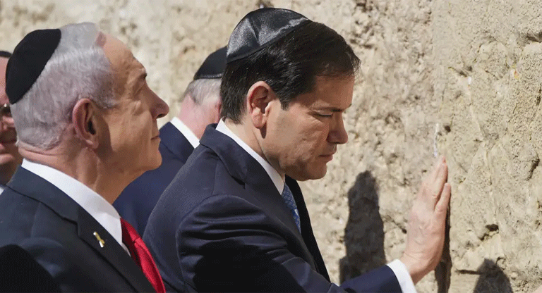 Según el Departamento de Estado, el objetivo del viaje de Rubio es garantizar a Israel el apoyo de Estados Unidos, antes del próximo reconocimiento de un Estado palestino por parte de varios países en la Asamblea General de la ONU. En Jerusalén, Rubio visitó el Muro de las Lamentaciones en compañía de Benjamín Netanyahu. «Bajo la presidencia de Donald Trump y el secretario Rubio, esta alianza nunca ha sido tan fuerte y lo agradecemos profundamente», dijo el primer ministro israelí mientras visitaban los túneles subterráneos del Muro de las Lamentaciones acompañados por el embajador de EEUU en Israel, Mike Huckabee, y sus respectivas esposas.