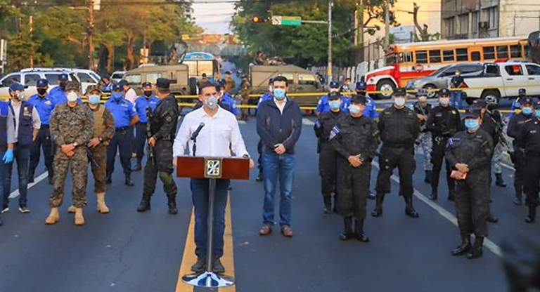 El Alcalde de San Salvador, Ernesto Muyshondt, con el apoyo de policías y militares, inició el lunes a las 6:00 de la mañana un cerco sanitario en el Centro Histórico de la ciudad capital.
