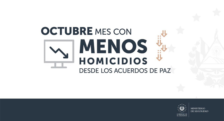 «Podemos confirmar que octubre 2019 se ha convertido en el mes con menos homicidios, en El Salvador, desde los Acuerdos de Paz. 112 homicidios en total. Dejando a agosto 2019 en segundo lugar con 130 y septiembre 2019 en tercer lugar con 143. Los 3 primeros lugares los ocupan meses ocurridos en nuestro Gobierno (que solo lleva 5 meses)», confirmó Nayib Bukele a través de su cuenta de Twitter.