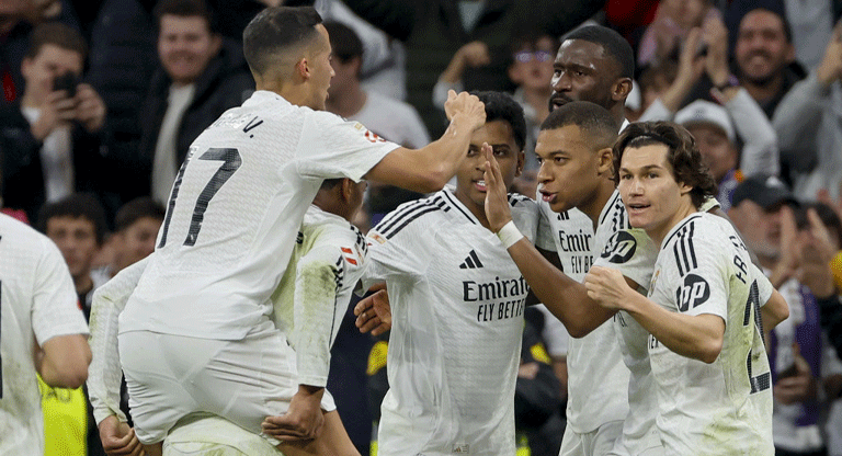 Los merengues cumplieron y derrotaron 2-0 al Getafe con goles de Bellingham y Mbappé. Este resultado les permite colocarse a un punto del Barça, con un partido menos en su haber.