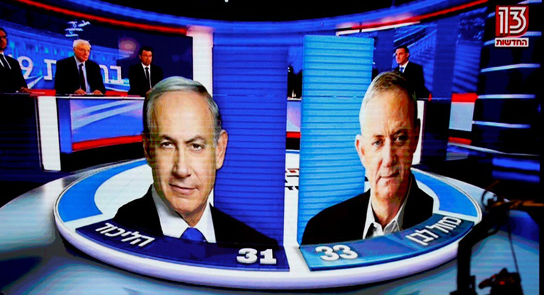 Según los sondeos de boca de urna publicados más temprano, ni el derechista Likud de Netanyahu ni el centrista Azul y Blanco de Gantz alcanzarían suficientes apoyos para formar gobierno con sus socios tradicionales, ya que no llegarían a los 61 escaños de un Parlamento de 120 asientos.