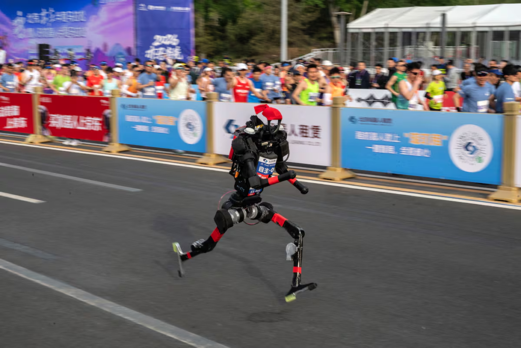 Un robot humanoide que ganó una media maratón para robots en Beijing el domingo superó el récord mundial humano, en una muestra de los avances tecnológicos de China.