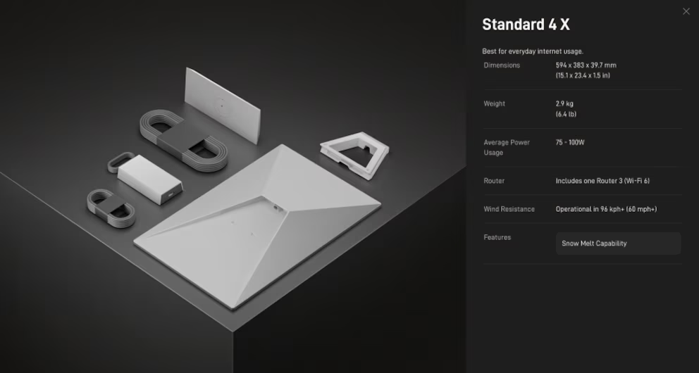El paquete Standard 4 incluye la antena estándar y un Router Mini compacto, que soporta Wi-Fi 6 de doble banda y se adapta a hogares con necesidades básicas de conectividad. Por su parte, el Standard 4 X incorpora la misma antena estándar, pero suma el router Gen 3 —rebautizado como Router 3—, capaz de gestionar Wi-Fi 6 de triple banda y ofrecer mayor cobertura, además de dos puertos Ethernet LAN adicionales.
