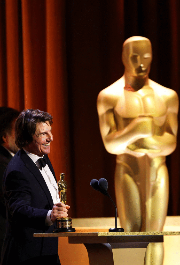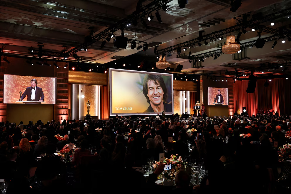 Conmovido y agradecido, Tom Cruise tomó el micrófono y, por un momento, dejó ver emoción en su voz: “Mi amor por el cine comenzó desde muy joven”, confesó. “La gran pantalla fue el espacio que me despertó hambre por la aventura, por el conocimiento, por entender a la humanidad, por crear personajes, contar historias, ver el mundo. Me abrió los ojos”. El actor, conocido también por sus arriesgadas escenas de riesgo ejecutadas sin dobles, dedicó palabras especiales a los otros homenajeados de la noche, incluidos la legendaria Dolly Parton, quien recibió el premio Jean Hersholt al mérito humanitario.