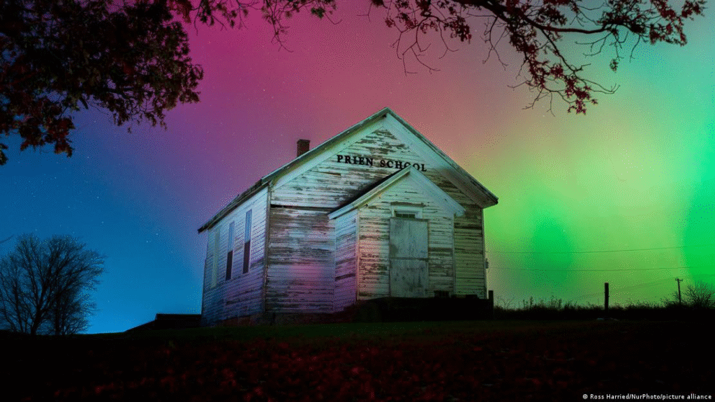 La aurora boreal iluminó el cielo nocturno sobre Monroe, Wisconsin