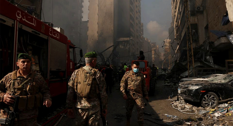 Periodistas de AP observaron cuerpos carbonizados en vehículos y en la calle en una de las intersecciones más transitadas de Beirut, en el barrio de Corniche al Mazraa, una zona mixta residencial y comercial. Edificios de apartamentos fueron alcanzados. Equipos de rescate utilizaron montacargas para remover escombros humeantes en busca de sobrevivientes.