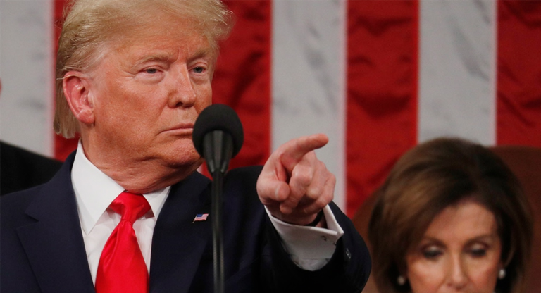 Nueve meses antes de los comicios en que buscará la reelección, Trump se jactó de una economía “rugiente” ante el pleno de los legisladores, sin decir una palabra sobre su proceso de destitución en vísperas de una absolución casi segura el miércoles por la mayoría republicana en el Senado.
